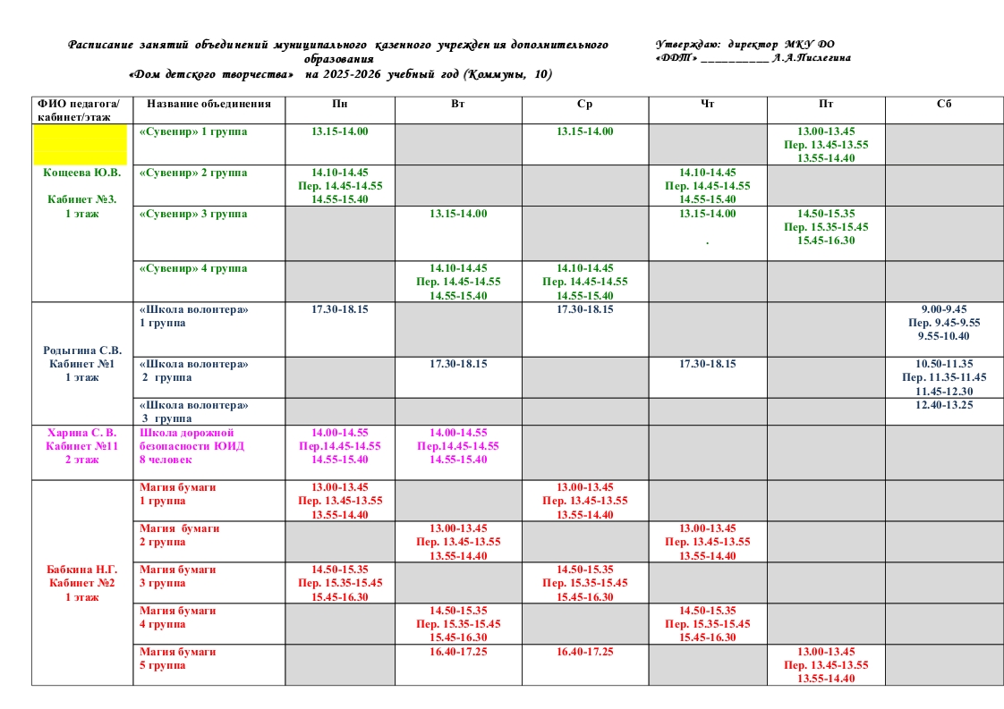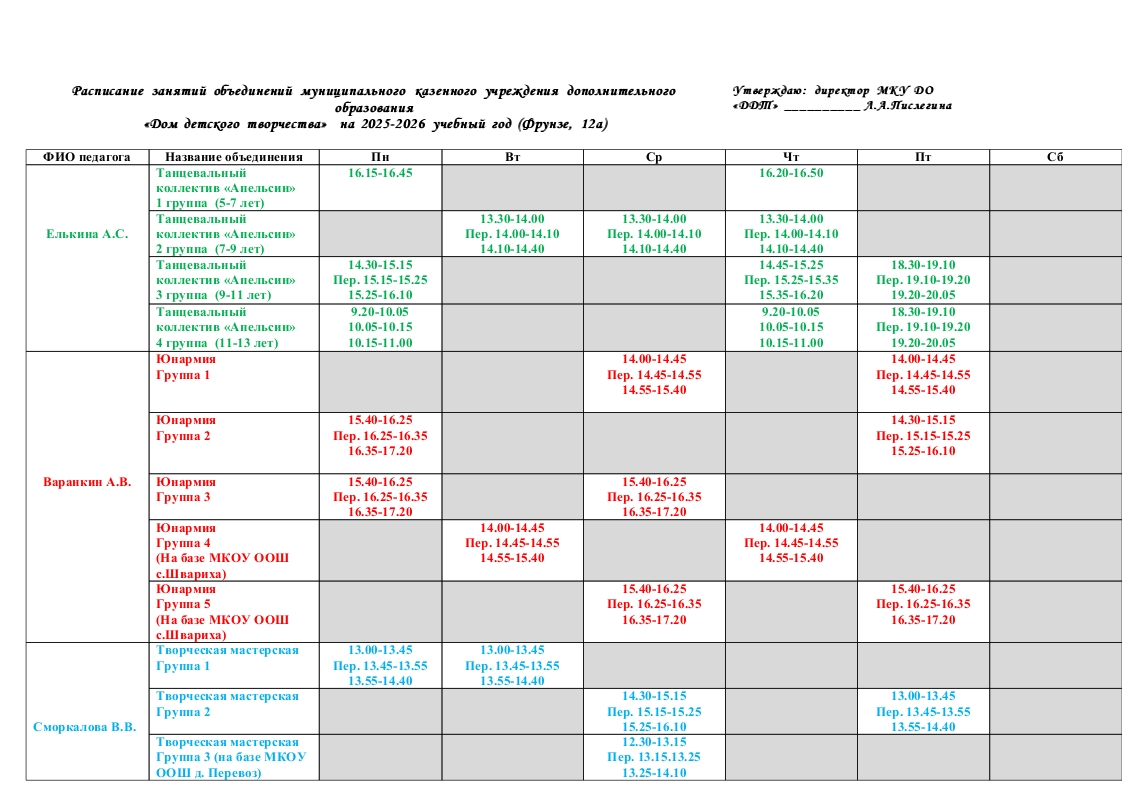 Расписание 2025-2026 учебный год |
